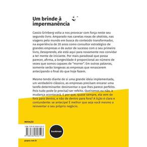Cassio Grinberg volta a nos provocar com força neste seu segundo livro. Amparado nas canelas roxas de skatista, nas viagens pelo mundo em busca do conteúdo transformador, na experiência de 20 anos como consultor estratégico de grandes empresas e de autor de sucesso com o seu primeiro livro, Desaprenda, ele está aqui para nos convidar a ter mente de iniciante. Por mais paradoxal que possa parecer, afirma, a longevidade é proporcional ao número de vezes que somos capazes de “morrer”. Em outras palavras, somente serão longevas as empresas que renascerem antecipando o final do que hoje fazem.