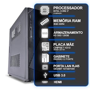 Desktop Intel i7 8ª Gen, 8GB RAM, SSD 120GB, USB/VGA/HDMI