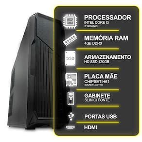 Computador Desktop Slim, Intel Core I3 2º Ger, 4Gb Ram, Hd Ssd 120Gb, Conexões Usb/Vga/Hdmi/Lan/Som
