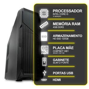 Computador Desktop Slim, Intel Core I3 2º Ger, 4Gb Ram, Hd Ssd 120Gb, Conexões Usb/Vga/Hdmi/Lan/Som