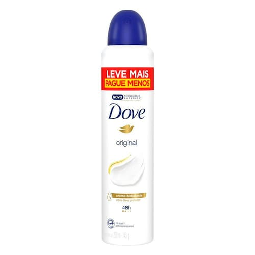 Cuida da pele delicada das axilas. - ¼ de creme hidratante para uma pele suave, macia e bonita. - Ajuda a reduzir a irritação da pele após a depilação. - Oferece até 48 horas de proteção antitranspirante. - Fragrância sutil ajuda na sensação de limpeza e refrescância. - O Antitranspirante Dove Aerosol Original, com ¼ de creme hidratante para o cuidado da pele, oferece até 48 horas de proteção antitranspirante, pensando sempre no melhor para a suas axilas.
