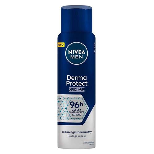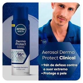 O Desodorante Aerosol Nivea Clinical Derma Protect Masculino promove 96 horas de proteção contra suor excessivo e mau odor. Possui fórmula enriquecida com a tecnologia Derma Dry que protege a pele e deixa a axila suave, macia e sem irritação. Isso tudo graças ao composto lactato, um condicionador próprio da pele que ajuda na hidratação.