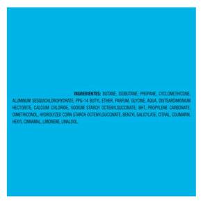 Modo de usar: Agite antes de usar. Pulverizar a 15 cm de distância da região onde for aplicado. Em caso de entupimento da válvula remova o botão plástico e lave-o com água quente.