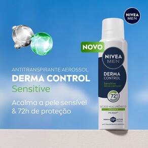 NIVEA MEN Desodorante Aerossol Derma Control Sensitive é um antitranspirante desenvolvido para oferecer proteção intensa contra o suor e o mau odor, cuidando da pele das axilas com uma fórmula especial que inclui Ácido Hialurônico e Vitamina E.