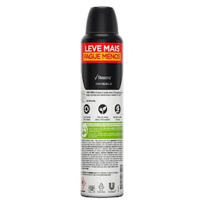 A nova e exclusiva fórmula de Rexona Invisible trabalha com um sistema de partículas menores e mais estáveis que formam uma barreira protetora mais resistente e duradoura contra a transpiração e o mau odor, mantendo você seco, fresco e protegido a cada novo movimento e por muito mais tempo.Sua tecnologiarotege protege a roupa contra manchas brancas e amarelas. 0% álcool*. (*) Não contém álcool etílico.