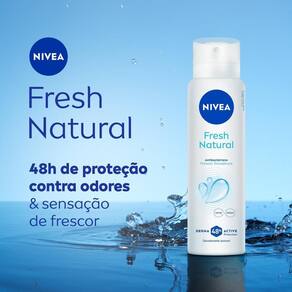 NIVEA Desodorante Antitranspirante Aerossol Fresh Natural oferece proteção contra o suor e mau odor, proporcionando uma fragrância exclusiva com sensação de frescor duradouro. Ele garante um cuidado por 48h, protegendo a pele durante todo o dia.