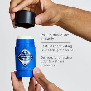 Desodorante masculino Jack Black Pit Boss — Desodorante Jack Black para homens, antitranspirante para homens, desodorante antitranspirante masculino, desodorante masculino, desodorante masculino para pele sensível, presentes masculinos — O antitranspirante e desodorante Jack Black Blue Midnight Pit Boss é um bastão sólido que oferece proteção superior contra odores e umidade. A fórmula suave antitranspirante e desodorante não irrita a pele delicada das axilas.