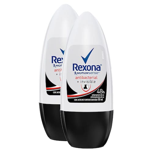 DESODORANTE ANTITRANSPIRANTE REXONA ANTIBACTERIAL + INVISIBLE ROLL-ON A exclusiva fórmula do novo Rexona Antibacerial + Invisible protege suas roupas de manchas branca e amarelas e ajuda a eliminar as bactérias que causam mau odor. 0% de álcool. 48h.