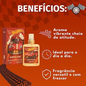 Fragrância desenvolvida em parceria com a icônica marca Hot Wheels, ideal para fãs.