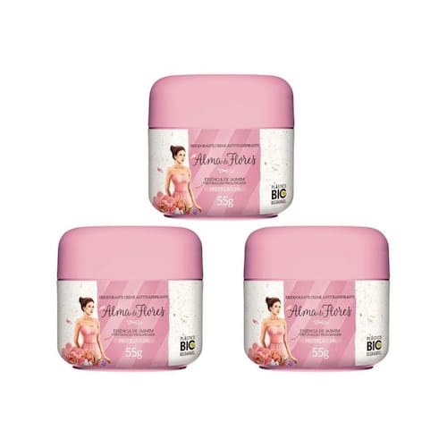 Desodorante creme alma de flores 55g essência de jasmim Descrição O desodorante creme alma de flores essência de jasmim 55g oferece proteção eficaz contra odores, proporcionando uma sensação de frescor e conforto durante todo o dia. Sua fórmula cremosa é enriquecida com a delicada fragrância de jasmim, que combina elegância e suavidade. Além de proteger, hidrata a pele das axilas, deixando-a macia e perfumada, ideal para quem valoriza cuidado e sofisticação no dia a dia. Modo de uso Aplique uma pequena quantidade do desodorante creme alma de flores essência de jasmim nas axilas limpas e secas, espalhando uniformemente. Aguarde até que o produto seja absorvido antes de se vestir. Utilize diariamente para garantir proteção e perfumação prolongadas.
