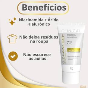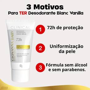 O Desodorante Creme Sérum Giovanna Baby Clinical Blanc Vanilla 60g da GIOVANNA BABY é a escolha perfeita para quem busca proteção avançada e cuidado delicado para as axilas. Sua fórmula inovadora em creme sérum oferece uma textura leve e de rápida absorção, garantindo conforto e eficácia ao longo do dia. Com a envolvente fragrância Blanc Vanilla, que combina a doçura da baunilha com notas elegantes, este desodorante proporciona uma sensação de aconchego e sofisticação, mantendo você confiante por muito mais tempo.