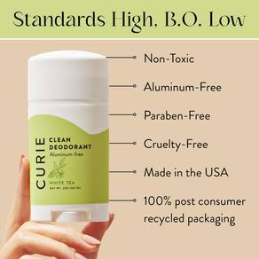 - Embalagem sustentável: o desodorante Curie vem em embalagens feitas de materiais 100% reciclados pós-consumo, reduzindo o desperdício e promovendo a sustentabilidade. Além disso, é totalmente reciclável depois de usá-lo!