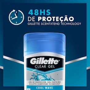 DESODORANTE GILLETTE CLEAR GEL COOL WAVE STICK ANTITRANSPIRANTE Proporciona elevada eficácia na eliminação do mau cheiro. Além disso, conta com um sistema de tripla proteção que o mantem protegido por