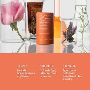 Desodorante Intesivo Lavanda e Alecrim 50g B.O.B Desodorante Intensivo Lavanda e Alecrim 50g B.O.B O Desodorante Intensivo Lavanda e Alecrim B.O.B é a escolha ideal para uma proteção diária natural, vegana e de alta performance, com uma fragrância suave e duradoura.O Desodorante Intensivo Lavanda e Alecrim 50g B.O.B é a solução perfeita para quem busca uma proteção eficaz e consciente. Este desodorante em barra é natural e vegano, formulado para ser livre de alumínio, parabenos, álcool e plásticos, promovendo uma rotina de higiene pessoal mais sustentável. Sua fórmula intensiva e de alta proteção, enriquecida com a agradável fragrância de lavanda e alecrim, atua ajustando o pH da pele e controlando o crescimento de microrganismos que causam o mau odor, sem bloquear a transpiração natural ou obstruir os poros. Com uma textura cremosa e sequinha, desliza facilmente sobre a pele, sendo de fácil remoção no banho e sem deixar resíduos. É um produto biodegradável, indicado para uso diário, compatível com todos os tipos de pele. Diferenciais: Fórmula natural e vegana, totalmente livre de alumínio, parabenos, álcool e plástico, para uma escolha mais saudável e ecológica.Proporciona alta proteção e combate eficazmente o mau odor, permitindo a transpiração natural da pele.Com a agradável e relaxante fragrância de Lavanda e Alecrim, oferece uma sensação de frescor duradoura.Enriquecido com manteigas de cacau e karité, nutre e hidrata profundamente a pele, prevenindo irritações e combatendo o ressecamento, inclusive pós-depilação.Não deixa manchas ou resíduos em roupas claras ou escuras, garantindo praticidade no uso diário. Mais sobre o Produto: Sua composição inovadora, com Citrato de Trietila, Ricinoleato de Zinco e Prata, ajusta o pH da pele e age diretamente no controle de microrganismos causadores do mau odor.Contém de Karité e da Semente de Cacau, que nutrem e fortalecem a barreira da pele, deixando-a macia e saudável.A presença de cera de girassol facilita a aplicação e remoção do produto, enquanto o araruta em pó e o zinco auxiliam na absorção do suor.É ideal para prevenir irritações e alergias, sendo compatível com todos os tipos de pele normal, seca, oleosa, mista, sensível e combatendo o ressecamento, inclusive após a depilação após 12h .Produto biodegradável e sustentável, contribuindo para um menor impacto ambiental. Dicas de Uso: Passo 1: Empurre o fundo do desodorante para cima, deixando aproximadamente 1 cm de produto exposto.Passo 2: Com as axilas limpas e secas, encoste o produto na pele e aguarde 5 segundos antes de aplicar.Passo 3: Deslize a barra sobre a axila e espere o produto secar completamente antes de se vestir normalmente.Para conservação, mantenha em local seco e arejado, longe de fontes de umidade e protegido de superfícies externas. Em dias muito quentes, caso o produto fique macio, deixe-o em ambiente fresco para que mantenha a textura ideal. Conservar ao abrigo da luz e calor.