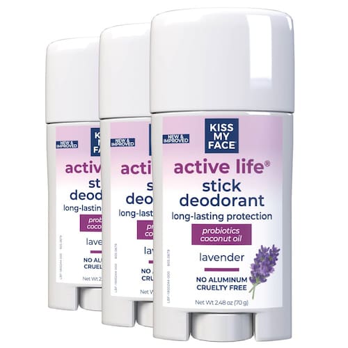 Kiss My Face O desodorante Active Life contém ingredientes derivados naturalmente, controle de odor 72 horas | desodorante para mulheres e homens, sem alumínio com óleo de coco e probióticos, aroma de