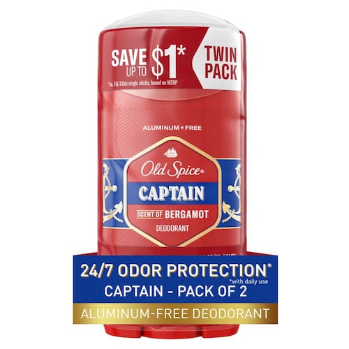 Desodorante Old Spice para homens, sem alumínio, proteção contra odores 24 horas por dia, 7 dias por semana, Captain com aroma de bergamota, 3 onças (pacote