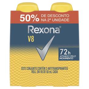 Desodorante Rexona Roll On V8 Masculino Rexona Men V8 combina com os amantes de velocidade e proporciona 48 horas de proteção contra a transpiração e o mau odor, deixando você confiante do primeiro ao