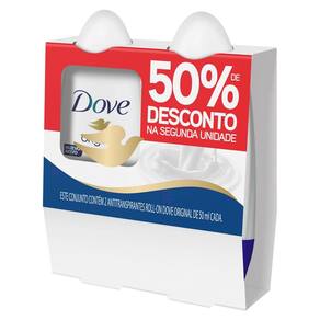O kit contém: 02 Desodorantes Roll On Dove Original 50ml.