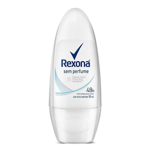 O Desodorante Roll On Rexona Sem Perfume é destinado a consumidoras que desejam um produto puro mas não abrem mão da proteção, Rexona garante proteção por até 48 horas. Rexona apresenta seu primeiro antitranspirante 0% perfume, 0% álcool, 0% parabenos, 0% corantes. É hipoalergênico, indicado para as consumidoras que sofrem com alergias e irritações na pele das axilas.