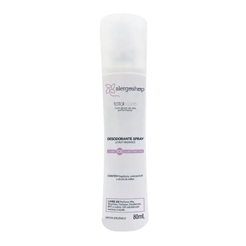 O Desodorante Spray Le Fruit Total Care da Alergoshop foi desenvolvido especialmente para pele sensível, com fragrância feminina suave inspirada no “Pear Gracé” da Victoria’s Secret. Sua fórmula é delicada, sem antitranspirante, e contém inibidores enzimáticos que ajudam a reduzir o mau odor naturalmente.