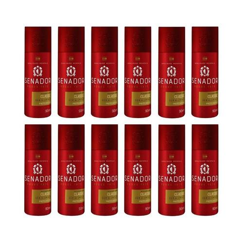 Na compra deste kit será enviado 12 unidades da desodorante spray senador classic 90ml cada Descrição: Descubra uma nova dimensão de frescor e confiança com o desodorante spray senador classic 90ml. Desenvolvido para proporcionar uma proteção duradoura contra o odor e a transpiração, este desodorante oferece uma fragrância clássica e sofisticada que mantém você revigorado ao longo do dia. Sua fórmula avançada é suave para a pele e seca rapidamente, proporcionando uma sensação de frescor imediato. O desodorante spray senador classic 90ml é a escolha ideal para homens que buscam um toque de elegância em sua rotina de cuidados pessoais. Com uma embalagem prática e compacta, este desodorante é perfeito para ser levado para qualquer lugar, garantindo uma proteção eficaz e um aroma marcante. Modo de uso: 1. Agite bem o frasco antes de usar. 2. Aplique o desodorante a uma distância de aproximadamente 15 cm das axilas, mantendo o frasco na posição vertical. 3. Pulverize uma quantidade suficiente para cobrir completamente a região. 4. Deixe secar por alguns segundos antes de se vestir. 5. Reaplique conforme necessário ao longo do dia para manter a frescura e a proteção. Marca: Não Informado