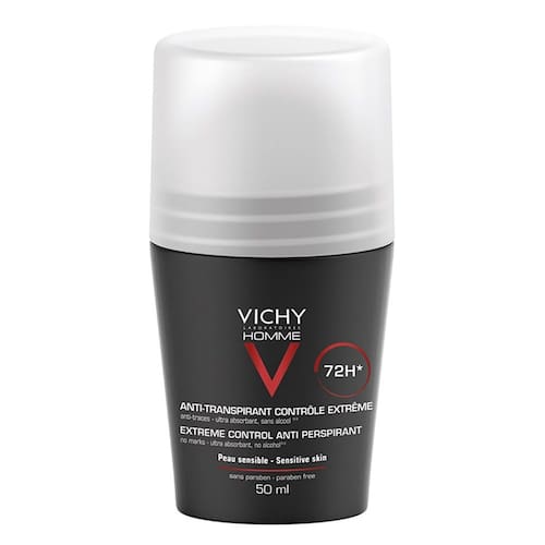 DESODORANTE VICHY HOMME 72H ROLL-ON Desodorante antitranspirante com eficácia 72h. Controle extremo. Indicação: Para pele masculina, transpiração normal a intensa. Uso diário. Eficácia: Absorve contin Marca: Não Informado