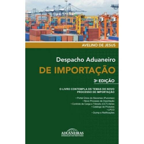 Avelino de Jesus elucida neste livro como efetuar o despacho aduaneiro de importação. Apresenta as regras administrativas e aduaneiras das importações, bem como os acordos internacionais que se inserem nas operações de importação. Apresenta também o novo processo de importação com os novos sistemas informatizados de comércio exterior. Aborda todas as particularidades operacionais do despacho aduaneiro, assim como discorre sobre os problemas que podem interferir, direta ou indiretamente, no curso do despacho. Traz informações que visam minimizar as dificuldades que possam existir durante a liberação de mercadoria. Não obstante, a presente obra cumpre o dever de ser um instrumento esclarecedor para aqueles que operam nesse setor, servindo como uma ferramenta de análise e reflexão quanto aos fundamentos operacionais que norteiam o despacho aduaneiro. Marca: Não Informado