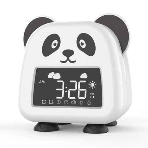 Material: ABS+silicone Tamanho: 106,5 × 79,5 × 109 mm Peso: 245 gDesign adorável de panda: este lindo despertador em forma de panda traz um elemento divertido e divertido para qualquer ambiente, tornando-o um complemento perfeito para quartos infantis ou áreas de estudo. Exibição de temperatura: O relógio possui um display de temperatura embutido, para que você possa verificar facilmente a temperatura ambiente enquanto gerencia sua programação diária. Recarregável e com baixo consumo de energia: este relógio é recarregável, oferecendo uma solução ecológica sem a necessidade de substituição constante da bateria. Brilho ajustável: personalize o brilho de acordo com sua preferência, garantindo que seja fácil ler a hora durante o dia e à noite. Características fáceis de usar: Com seus controles simples e intuitivos e várias funções, incluindo alarme e cronômetro, este relógio é ideal para crianças e estudantes que precisam de um relógio confiável e divertido.