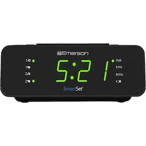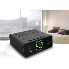PRODUTO INTERNACIONAL. Com o rádio relógio CKS1900 da Emerson, nunca mais você precisará se preocupar em configurar a hora correta. Com uma tecnologia premiada e patenteada, a exibição '12:00' piscante é coisa do passado. Além disso, o CKS1900 tem uma tela LED grande e fácil de ler, com controle de dimmer, ideal para não forçar a vista no escuro.