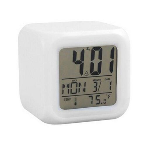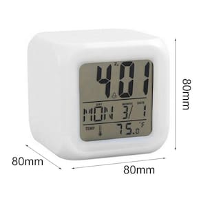 Características destacadas Com um design charmoso e elegante, combina linhas fluidas leves e simples. Completo, elegante e moderno. Cada minuto do ciclo pisca luzes muito coloridas. Esta função é controlada por um interruptor. Tocar na parte superior do produto emite automaticamente luz fria e a luz desaparece após 5 segundos. com termômetro, calendário, calendário, hora do alarme e exibição de configurações. Veja menos