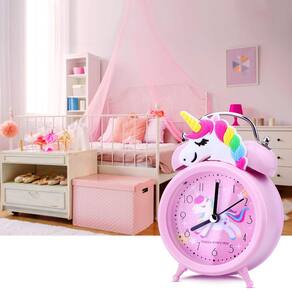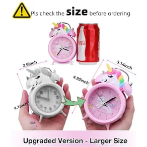 Despertador de unicórnio para meninas e crianças, decoração de quarto fofo, ponteiro silencioso sem tique-taque, com luz de fundo, sino duplo super alto, para crianças presentes de unicórnio (rosa) tamanho portátil - DECORAÇÕES DE ANIVERSÁRIO UNICÓRNIO PARA MENINAS - É um despertador com design especial para crianças e adolescentes. Com design de unicórnio rosa fofo e criativo, mostrador 3D exclusivo e especial, este despertador para meninas é um presente perfeito para seus filhos em festas, aniversário, dia das crianças, Natal, inauguração de casa ou qualquer dia significativo. - Alto o suficiente – Este é um despertador infantil adequado para acordar, que é muito adequado para pessoas com sono pesado. É alto o suficiente para acordar suas meninas de um sono profundo. Você não precisa se preocupar com o atraso de seus filhos para a escola com este despertador de sino de unicórnio. - Bastante à noite – Este despertador arco-íris de unicórnio não tem tique-taque, pois os movimentos de varredura garantem que o despertador seja completamente silencioso o dia todo. Sua princesinha terá um sono de sonho mais reparador e profundo. Recomendamos o uso de 1 pilha AA de 1,5 V (não incluída). - Retroiluminação – Basta pressionar o botão na parte traseira deste despertador para ativar a função de luz de fundo. Você saberá a hora claramente à noite com a luz noturna amarela suave. - Definir alarme – alarme fácil de definir com os botões de controle na parte de trás deste despertador. 100% DE REEMBOLSO GARANTIDO - Se você tiver alguma reclamação sobre este produto, sinta-se à vontade para entrar em contato conosco para uma devolução ou troca, ele vem com uma garantia de 1 ano.