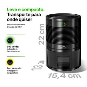 - Desumidificação (l/dia): até 250ml por dia. Para atingir o máximo de desumidificação por dia (250ml) o ambiente deve ser menor que 20m², estar a 30°C e com o nível de umidade inicial em 80%.