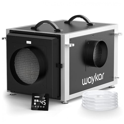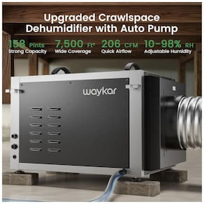 Desumidificador de Crawl Space Waykar 74 litros com Controle Remoto e Bomba, Design de Duto Duplo HVAC Comercial para Desumidificação de