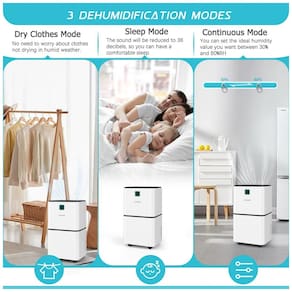 Múltiplos recursos humanizados O modo de secagem especialmente projetado é muito adequado para clima ou estações úmidas. Ele pode remover a umidade excessiva das roupas e mantê las secas e limpas. Duas velocidades diferentes do ventilador podem atender a diferentes necessidades. O design de baixo ruído de 36dB mantém você longe de ruídos perturbadores enquanto dorme ou estuda. Defina um temporizador de 12 horas para se adequar ao seu estilo de vida e economize nos custos de energia. A função de descongelamento automático evita que a água coletada congele e prejudique a máquina. Drenagem dupla automática e manual Fácil de usar Drenagem automática Este desumidificador de porão está equipado com uma mangueira de drenagem que pode ser conectada ao orifício do tubo de drenagem para drenar continuamente a água sem esvaziar o tanque de água várias vezes. Drenagem Manual O tanque de água tem 2L, portanto, quando atingir a capacidade máxima, o desumidificador irá parar automaticamente e o indicador tanque cheio acenderá até que o tanque de água seja esvaziado. Não se preocupe com o risco de transbordamento da água. Design compacto e portátil para a casa moderna O design do desumidificador HUMILABS é elegante e moderno. Considerando que a maioria dos desumidificadores volumosos são difíceis de mover. Com as rodas giratórias de 360 projetadas e a alça integrada, você pode mover nosso desumidificador facilmente sem arranhar o chão. Enquanto isso, com o filtro destacável e lavável, é fácil de limpar e usar várias vezes para facilitar a manutenção