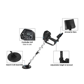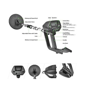 Os recursos do detector incluem Visor LCD: Mostra o tipo provável de metal com uma seta, a profundidade do alvo, a faixa de DISC (distinção), o nível de SENS (sensibilidade) com o segmento, o modo de operação e a indicação da bateria. Distinção de Áudio de Três Sinais: Emite sinais distintos para diferentes tipos de metal. DISC: Ignora os metais inúteis e encontra itens valiosos com a configuração da faixa de DISC. P/P: Identifica a localização precisa do alvo detectado. Entrada de Fone de Ouvido (3,5 mm): Permite conectar fone de ouvido (não fornecido) Alimentação: Opera com duas baterias de 9V Bobina Exploradora impermeável: Permite a utilização do detector, mesmo sob a água até 10 cm. Sensibilidade de até 180mm. Pode detectar até 20 cm de profundidade e quanto maior o volume do objeto enterrado melhor é a detecção. Indicador de condição de carga das baterias. Haste Ajustável com apoio. Permite ajustar o comprimento do detector para uma utilização confortável. Apoio de braço e haste Projetado para eliminar a tensão no antebraço e dar mais firmeza na movimentação.
