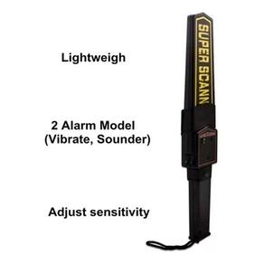Detector De Metais Super Scanner N03 - O Detector identifica metais grandes ou pequenos, podendo optar por um aviso sonoro, luminoso ou vibratório. Além de ser muito leve e de fácil utilização. Proteja sua escola ou creche com o Detector de Metal Scanner de alta sensibilidade da marca ROHS MINIMEN. Este detector de metais foi projetado para detectar rapidamente objetos de metal em lugares críticos, como escolas e creches, reduzindo o risco de atentados. Este detector de metal portátil tem uma luz indicadora de energia e modo de detecção por som ou vibração, para que você possa escolher o modo que melhor se adapta ao seu ambiente de trabalho. O scanner tem um de reset automático para mudar a função de sensibilidade, permitindo que você detecte tanto grandes objetos de metal quanto pequenos. Desempenho e características: Fácil de operar; Equipado com couro, para facilitar o transporte; Quando há tensão suficiente a luz indicadora brilha e dispara o alarme; Tem alarme de luz e som, e vibração ao solicitar o modo duplo; de reset automático para mudar a função de sensibilidade, conseguindo assim detectar grandes e pequenos objetos de metal; Pode precisar ser ajustado de acordo com a sensibilidade; Parâmetros da especificação: Sensibilidade de detecção: Diâmetro 2.5mm bola; Fonte de alimentação: Bateria de 9 volts 6f22nd para não incluir ; Consumo de energia: 270mw; Freqência de operação: 22khz; Corrente de trabalho: Menos de 50ma; Temperatura de trabalho: -5 C / +55 C; Peso líquido: 409g; Tamanho: 410x85x45mm; Saiba mais sobre Detectores: Detectores de revista pessoal - examina se o corpo revistado possui algum tipo de metal escondido, camuflado entre as vestes. Estes detectores também são utilizados para procurar objetos que possam cair dentro do corpo de uma pessoa numa cirurgia e para busca de metais na fabricação de tecidos, roupas, couros, etc. São divididos em dois formatos, ESPADA e RAQUETE. Esse tipo de detector é portátil, facilitando assim, a locomoção para qualquer lugar. Geralmente são utilizados nos aeroportos, penitenciárias, fórum, shows, escolas, eventos esportivos e outros locais de fluxo de pessoas que exigem máxima segurança. Também estes equipamentos são detectores auxiliares dos pórticos fixos ou portáteis. Você irá receber: 1 Detector De Metais tipo espada ; 1 Manual de instrução; 1 Bateria 9Volts; Características Gerais do Produto: : do site - 1 Mês Marca: Não Informado