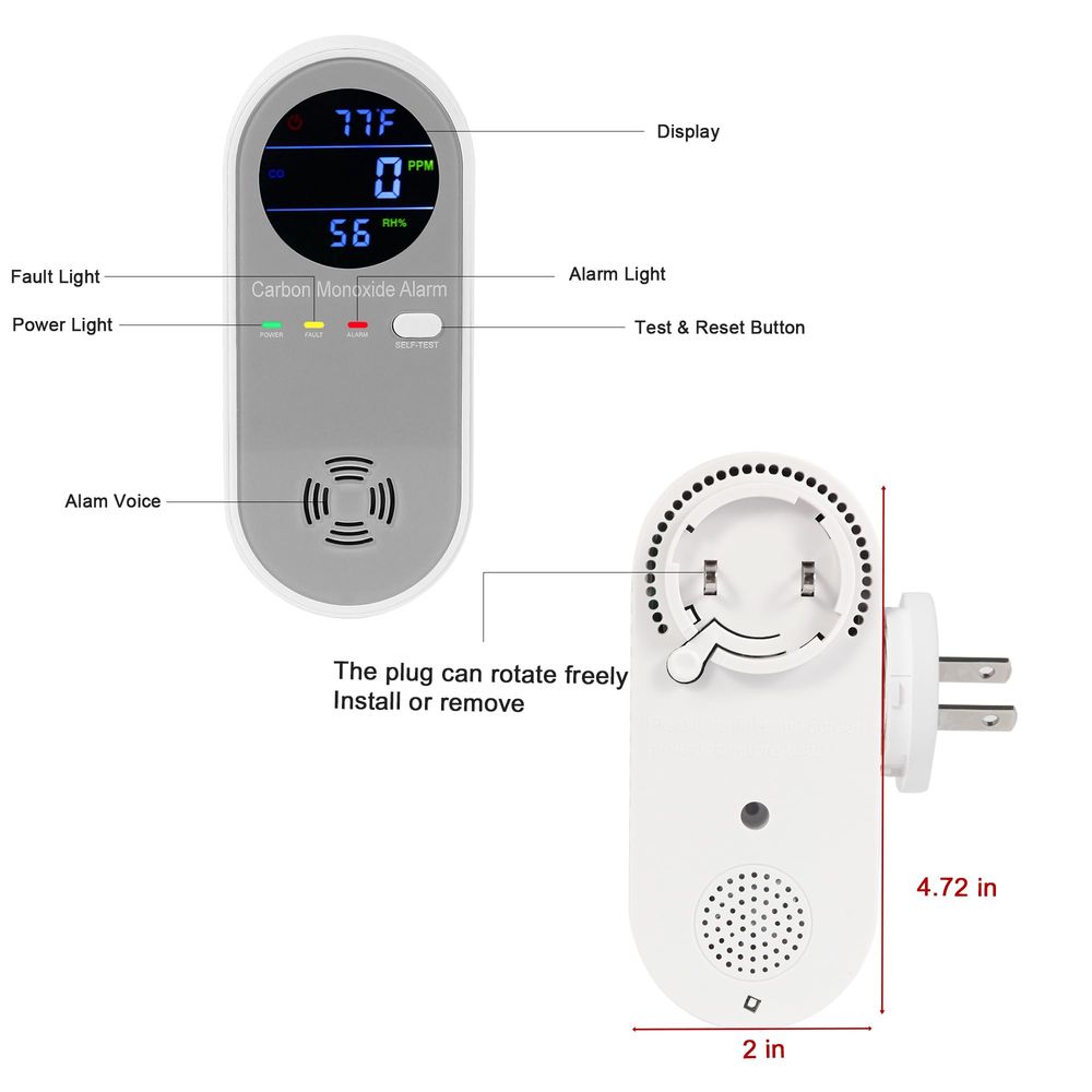- ?Detector de monóxido de carbono atualizado 3 em 1? - Projetado com um grande visor digital, ele detecta e exibe os níveis de temperatura, umidade e monóxido de carbono em tempo real para sua paz de espírito