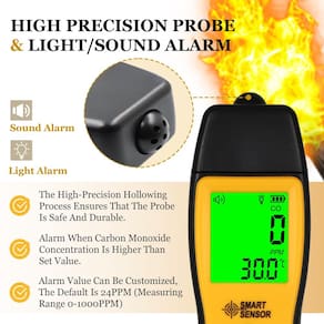 - ?Medidor de CO de precisão?Medidor portátil de monóxido de carbono com sensor eletroquímico sensível pode detectar intervalo de CO de 0 ~ 1000 PPM e faixa de temperatura de 32 ~ 50 °C. Com função de calibração automática, pode ajudá-lo a detectar a concentração de gás monóxido de carbono em tempo hábil e preciso, reduzir o risco de envenenamento por monóxido de carbono e proteger a vida e a propriedade de você e sua família.