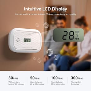- Sensor eletroquímico avançado: este detector de monóxido de carbono usa tecnologia eletroquímica avançada para medir com precisão os níveis de monóxido de carbono, fornecendo alertas oportunos para manter você e seus entes queridos protegidos contra monóxido de carbono prejudicial.