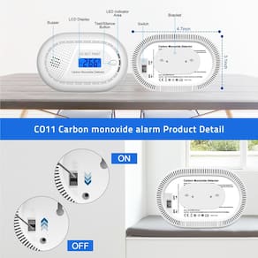 - Alarme rápido de monóxido de carbono: este alarme detector de monóxido de carbono usa um sensor eletroquímico de monóxido de carbono atualizado, que pode emitir um som superior a 85 decibéis e piscar uma luz LED vermelha para alarme