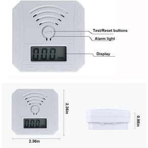 - 3. Aviso de alarme: quando um nível perigoso de monóxido de carbono é detectado, o LCD pisca e um padrão de alarme alto soará -- Alarme alto de 85 decibéis com flash LED.