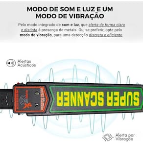 - Detecção Precisa: Identifica tanto metais grandes quanto pequenos com opção de aviso sonoro, luminoso ou vibratório. Uma ferramenta versátil e eficaz para todas as suas necessidades de segurança.