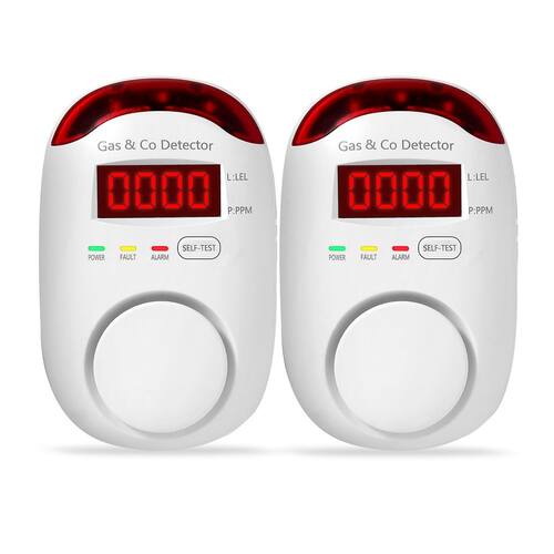 - ?2 pacotes atualizados com detector de gás e monóxido de carbono?Plug-and-play, visor digital LCD, fácil de instalar.