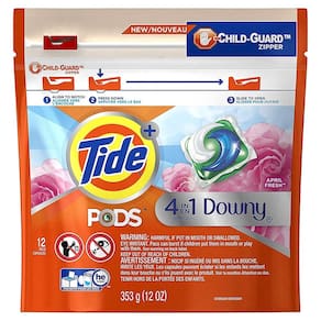 Tide pods detergente 4 em 1 com Downy abril fresco com novos child-guard zíper (peso líquido. 12 oz por pacote; 12 contar pods por pacote). Pacote de 2 pacotes por quantidade encomendado (total de 24 contar pods). Ele (alta eficiência) máquina de lavar compatíveis – Funciona em todas as máquinas de lavar.