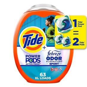 - Inclui uma cuba de 63 unidades de cápsulas de detergente para roupas Tide Power Pods com Febreze Sport em cápsulas de detergente para roupas