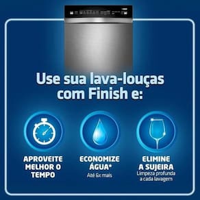 Benefícios do Finish Power Powder Advanced: Limpeza Profunda: A ação desengordurante e a remoção de sujeiras garantem louças impecáveis na primeira lavagem, sem necessidade de pré-enxague.