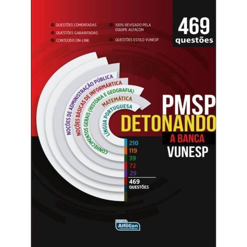 A obra Quando uma possibilidade de mudança de vida bate à nossa porta, devemos ter uma postura firme para conseguirmos o sucesso: temos que ser melhores do que a média das pessoas. Não é uma tarefa fácil, pois uma tomada de decisão sempre traz consequências, que podem ser positivas e/ou negativas. O segredo é agir pela razão, e não pela emoção, para saber agarrar uma oportunidade. Que tal você começar a fazer de sua vida um sucesso? A oportunidade é o concurso para PMSP. Fazer parte desse órgão público é o objetivo de muitas pessoas, pois, além dos benefícios salariais, existe a possibilidade de ascensão e desenvolvimento profissional. Além disso, há uma excelente remuneração inicial que pode ser aumentada conforme a dedicação e o desempenho do funcionário concursado. Como a Editora AlfaCon sempre está preocupada com os concurseiros, apresentamos a você a Coleção Detonando a Banca. Este material não é especificamente de teoria, portanto deve ser utilizado como um complemento. São apresentadas questões comentadas e gabaritadas dos conteúdos mais importantes previstos no último edital para SOLDADO da Polícia Militar. É importante ressaltar que as questões estão atualizadas conforme as alterações ocorridas até a publicação desta obra. Então, lembre-se: é a razão que nos faz prosseguir e vencer. Devemos ficar atentos às possibilidades que surgem, pois elas são a motivação para lutar, perseverar, ter disciplina, acreditar na ciência e seguir em frente. Não perca esta oportunidade. CONTEÚDOS CONTEMPLADOS Língua Portuguesa Matemática Conhecimentos Gerais Noções Básicas de Informática Noções de Administração Pública