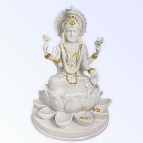 Deusa Lakshmi na Flor de Lótus Resina - Escolha Modelo e Cor Cor: Branco Resina 15 cm Deusa Lakshmi na Flor de Lótus Resina - Escolha Modelo e Cor