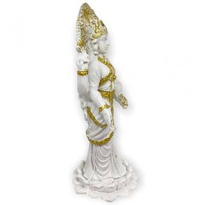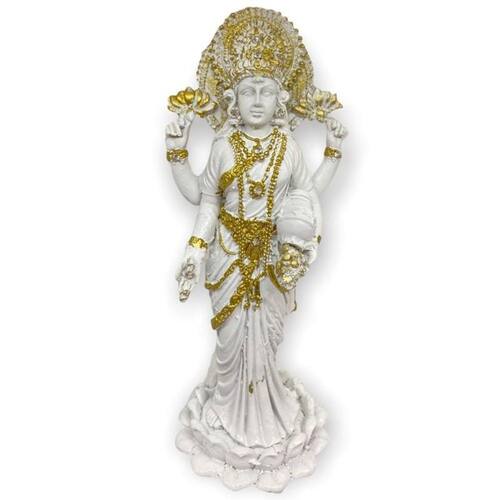 A deusa Lakshmi da Bialluz representa a sabedoria, a fortuna, o intelecto e a prosperidade. Nossa Escultura Deusa Lakshmi trará muita sabedoria e luz em sua vida. Emanará muitas energiass positivas em seu ambiente e afastará todas incertezas. Confeccionada em resina nossa escultura tem alta durabilidade e detalhes muito bem feitos que compõem a belíssima qualidade dessa peça.
