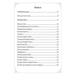O Devocionário a Cristo Rei é fruto de nosso desejo de apresentar a nossos leitores um sólido recurso para a vida espiritual, que poderá os acompanhar em diversos contextos da vida cotidiana. O livro tem:416 páginasCapa duraFormato de bolso (10,5 x 14,5)Três fitas para marcar páginaMiolo em papel de alta qualidade (duas cores)Exame de consciênciaTabela com sugestão de plano de vidaBreve explicação sobre oração mentalOfício da Imaculada ConceiçãoOrdinário da Missa nas duas formas do rito latinoDiversas imagens devocionaisCantos gregorianos, populares e muito mais!